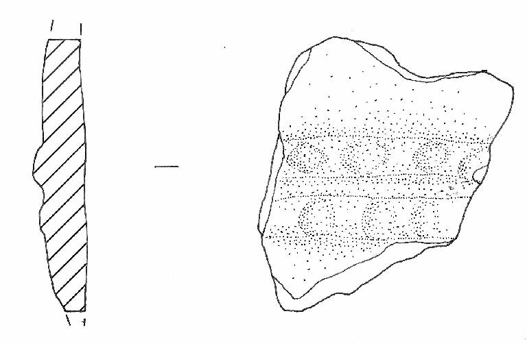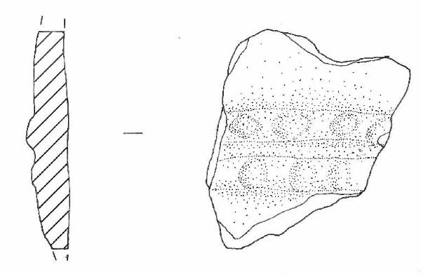 Parete rettilinea con due cordoni paralleli decorati da una serie di 4 e 3 coppelle.