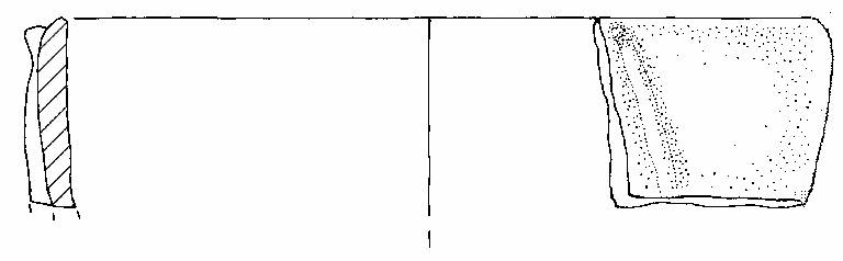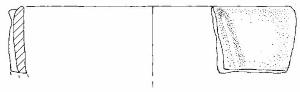 Parete leggermente convessa, orlo arrotondato leggermente rientrante, decorazione acordone plastico leggermente obiliquo con una strozzatura presso la porzione finale superiore