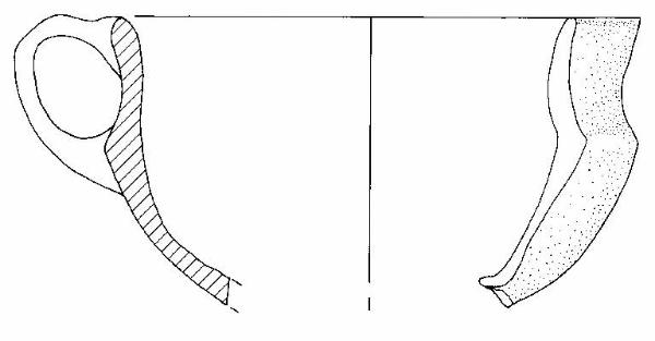 Parete carenata con vasca a calotta e parete superiore concava, carena a due terzi altezza, orlo arrotondato esoverso. Ansa ad anello impostata sull-orlo e sulla carena.