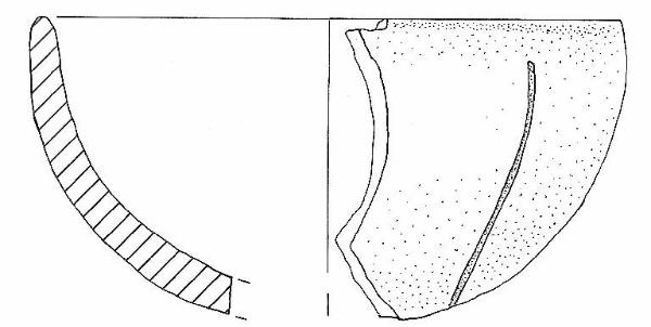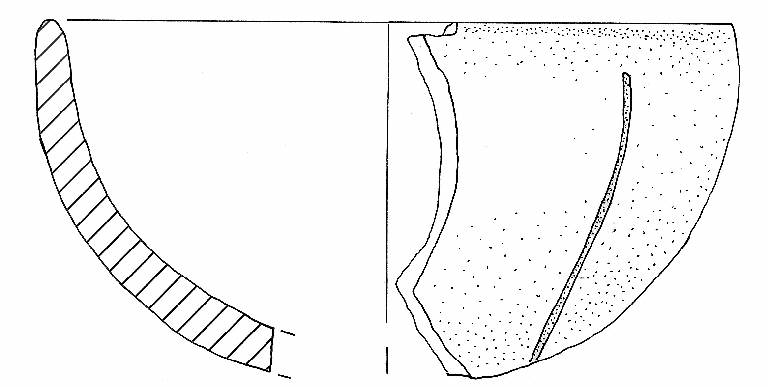 Parete convessa decorata da una solcatuta verticale, orlo assottigliato arrotondato