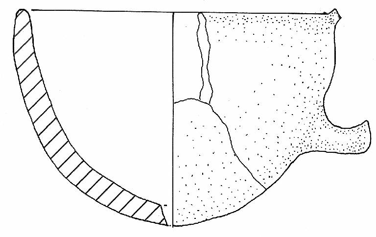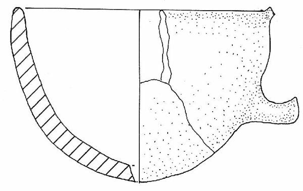 Parete convessa orlo rientrante assottigliato arrotondato, ansa a sezione circolare impostata sull-orlo a a met' altezza