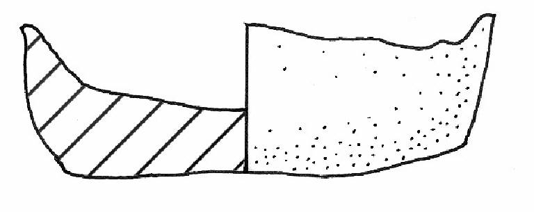 Fondo piano, parete rettilinea leggermente esoversa, orlo assottigliato. Solcatura sul fondo