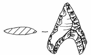 Ritocco piatto, coprente, foliato. A base concava con alette uguali e convergenti, margini leggermente convessi, punta a margini convessi. Sezione appiattita.