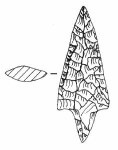 Ritocco piatto, coprente, foliato. Con peduncolo a margini convergenti e base appuntita, alette orizzontali appena accennate, margini rettilinei e punta triangolare. Sezione bombata