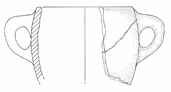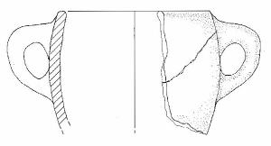 Parete concava con orlo rientrante debolmente arrotondato, ansa ad anello con sezione a nastro, impostata poco sotto l'orlo e sotto il diametro massimo
