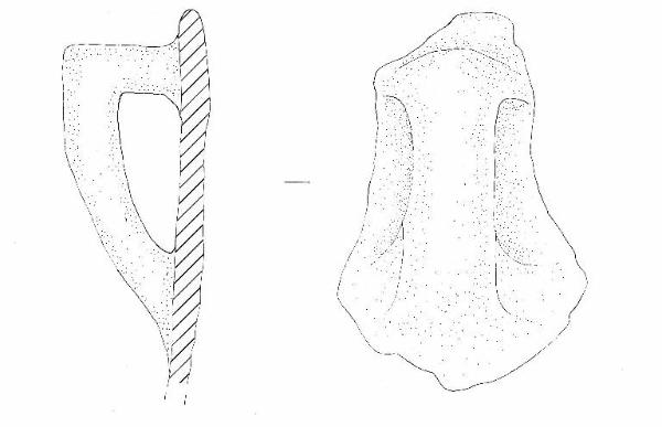Parete rettilinea, orlo diritto arrotondato, ansa a gomito impostata subito sotto l'orlo
