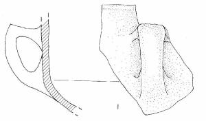 vasca a calotta, parete superiore rettilinea, ansa a gomito impostata sul diametro massimo e sotto l'orlo
