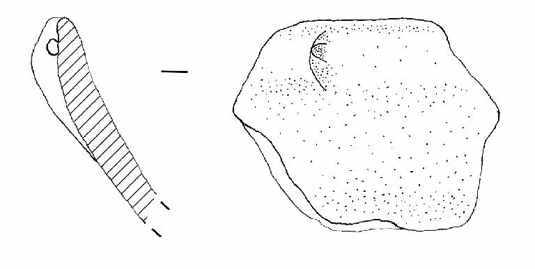 Scodella con parete rettilinea esoversa, orlo verticale arrotondato, ansa canaliculata