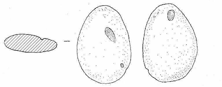 Ciottolo a sezione lenticolare e profilo sub ellittico con foro passante obliquo nella porzione più affusolata