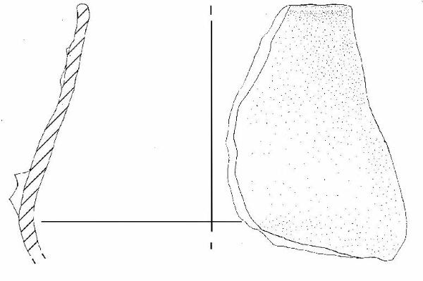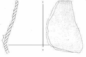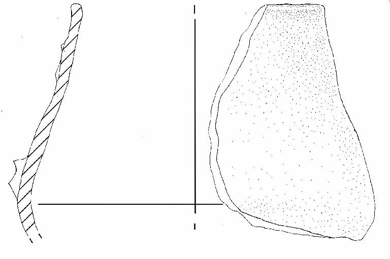 Parete superiore rettilinea introflessa, orlo estroflesso, ingrossato, arrotondato, ansa impostata sul diametro massimo e presso lìorlo