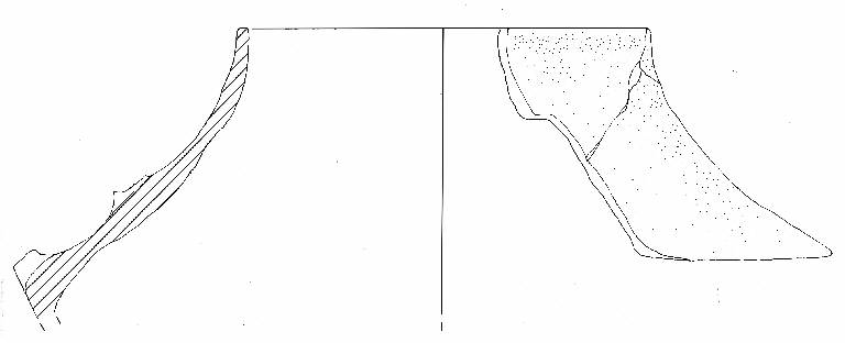 Parete convessa, spalla pronunciata, collo diritto, orlo diritto e rettilineo. Atttacco dell'ansa sulla spalla