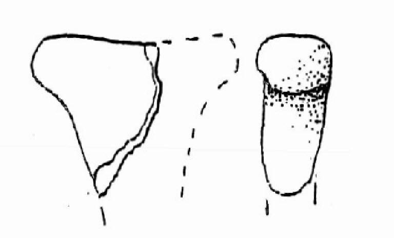 Sezione a nastro. Leggera insellatura sommitale. Apice sinistro ben delineato, profilo lievemente arrotondato.