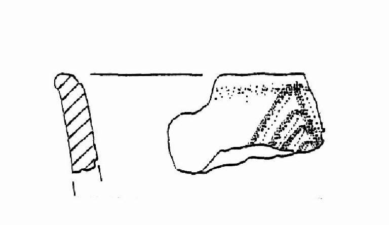 Orlo esoverso e parete rettilinea decorata a solcature con motivo a denti di lupo campiti da solcature