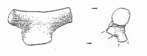 A nastro, estremità leggermente insellata, appendici a sezione circolare con terminazione a "mazzuolo"