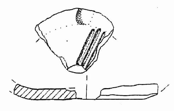 Fondo piano decorato da una banda di 3 spolcature strette e una coppella? probabilmente parte di un motivo solare.