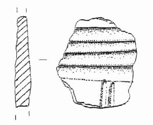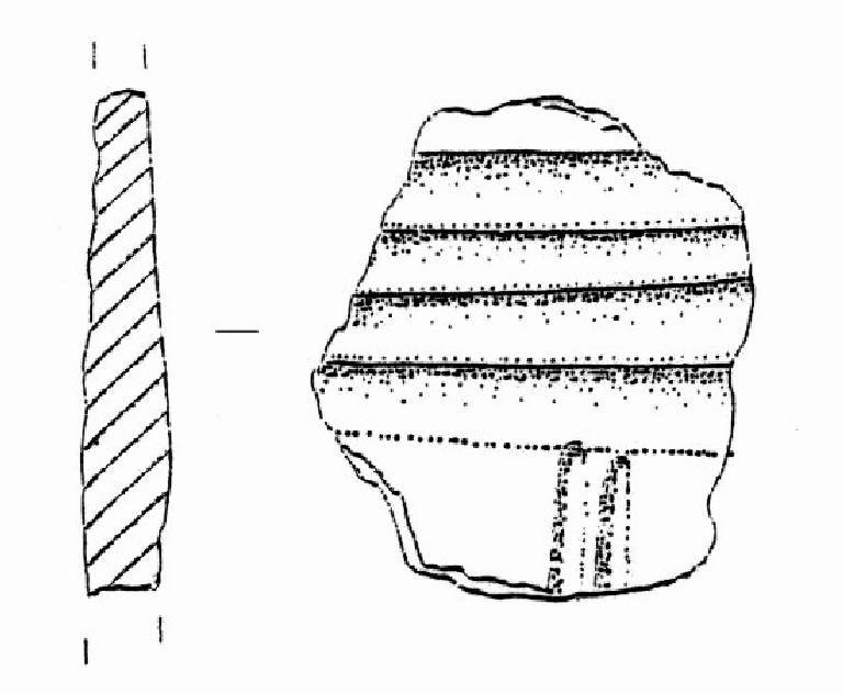 Parete decorata da quattro larghe solcature parallele associate a due solcature perpendicolari ad esse