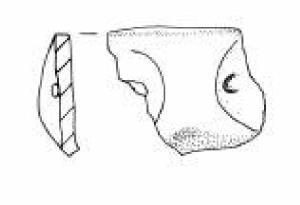 Parete superiore rettilinea. Orlo piatto e ansa canaliculata.