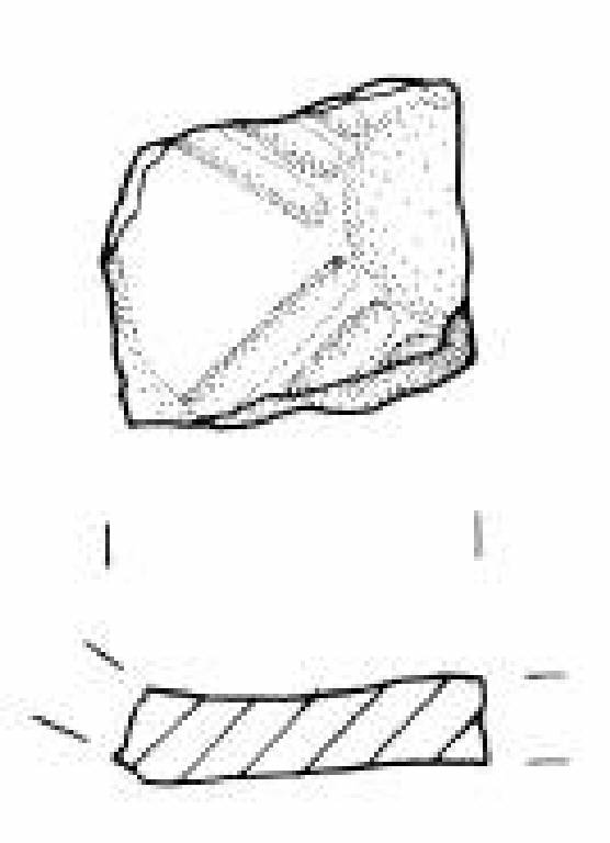 Fondo ombelicato decorato con fasci di tre larghe solcature disposti a formare un motivo cruciforme intorno ad una coppella centrale.