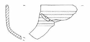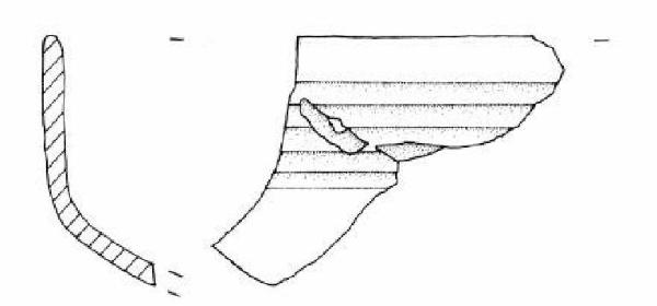 Quattro frammenti con orlo arrotondato e corpo a calotta decorato con cinque larghe solcature orizzontali.