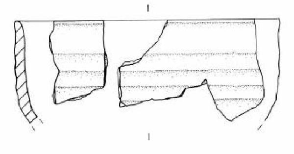 Tre frammenti con olro arrotondato leggermente esoverso e corpo a calotta decorato da quattro larghe solcature orizzontali.