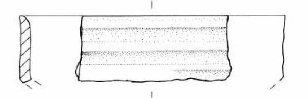 Due frammenti con orlo arrotondato leggermente esoverso. Parete superiore rettilinea decorata con un fascio di larghe solcature orizzontali. Carena a spigolo vivo.