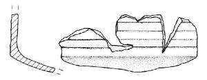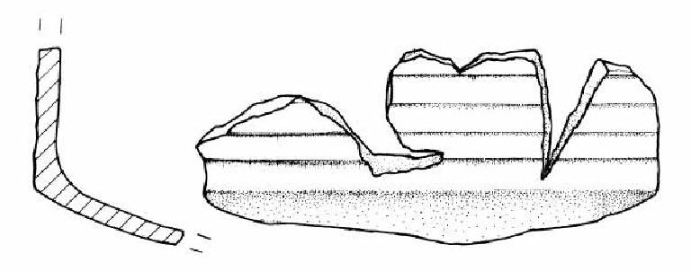 Sei frammenti con parete superiore rettilinea decorata con un fascio di larghe solcature orizzontali. Carena a spigolo vivo e vasca troncoconica.