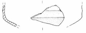 Parete superiore rettilinea decorata con un fascio di larghe solcature orizzontali. Carena arrotondata e vasca troncoconica.