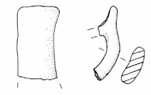 Ansa ad ascia con taglio rettilineo leggermente espanso a destra.