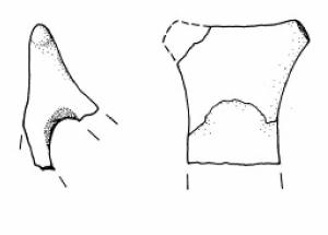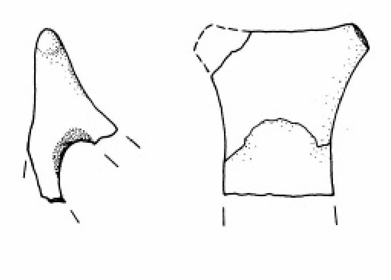 Ansa a corna tronche con taglio leggermente insellato con appendice sinistra mancante.