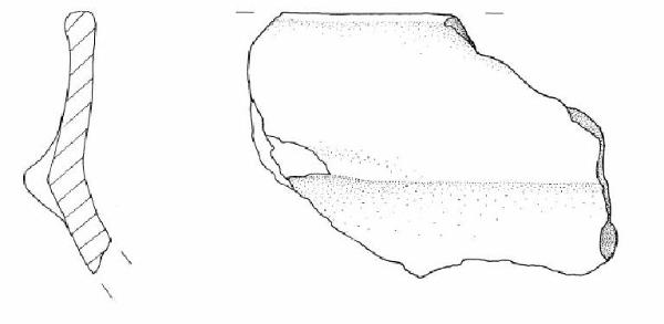 Orlo piatto ingrossato. Parete superiore a profilo leggermente concavo, presa lacunosa impostata sulla carena a spigolo vivo e vasca a calotta.