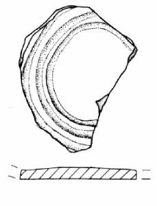 Fondo piatto decorato con un fascio circolare di tre solcature che ne segue la circonferenza.