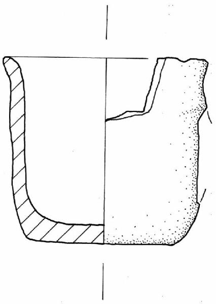 Orlo estroflesso arrotondato. Parete a profilo rettilineo con traccia di attacci d'ansa. Fondo piatto.