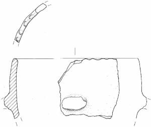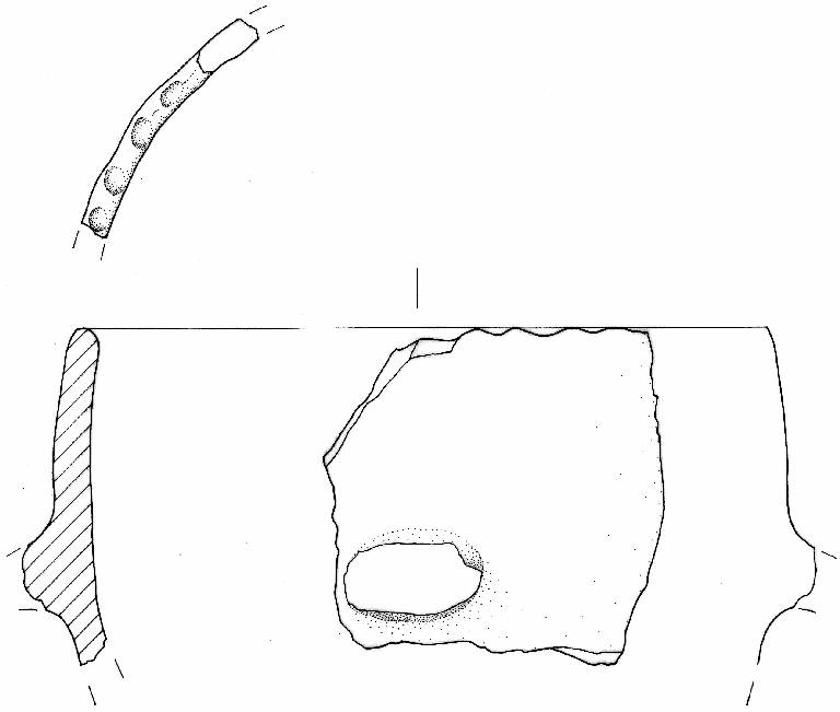 Orlo diritto digitato. Parete a profilo convesso con traccia dell'attacco verticale di un'ansa a nastro impostata sotto l'orlo.