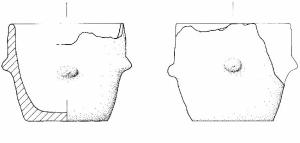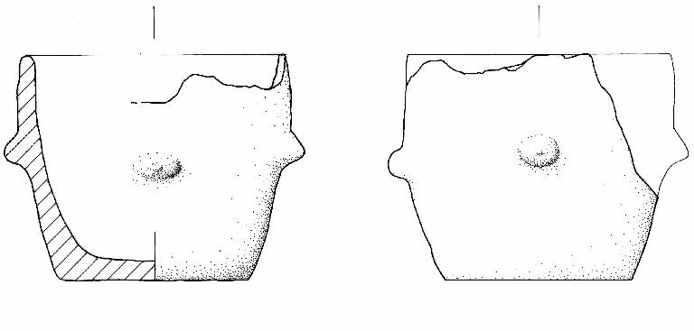 Orlo diritto. Parete decorata con quatro bugnette plastiche impostate a circa metà altezza. Fondo piatto.