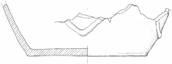 Fondo leggermente concavo. Parete a profilo convesso decorata con un cordone plastico serpeggiante impostato nella zona del fondo.