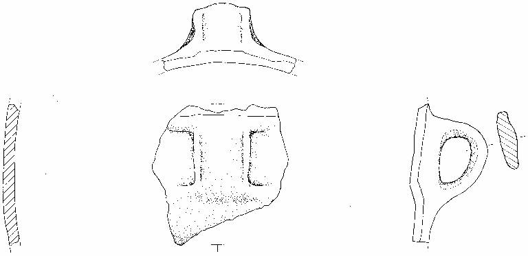 Orlo introflesso obliquo verso l'interno. Parete a profilo convesso con ansa a nastro ad attacco verticale impostata sul diametro massimo.