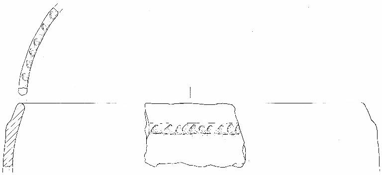 Orlo introflesso decorato ad impressioni digitali. Parete convessa con cordone plastico digitato impostato sotto l'orlo.