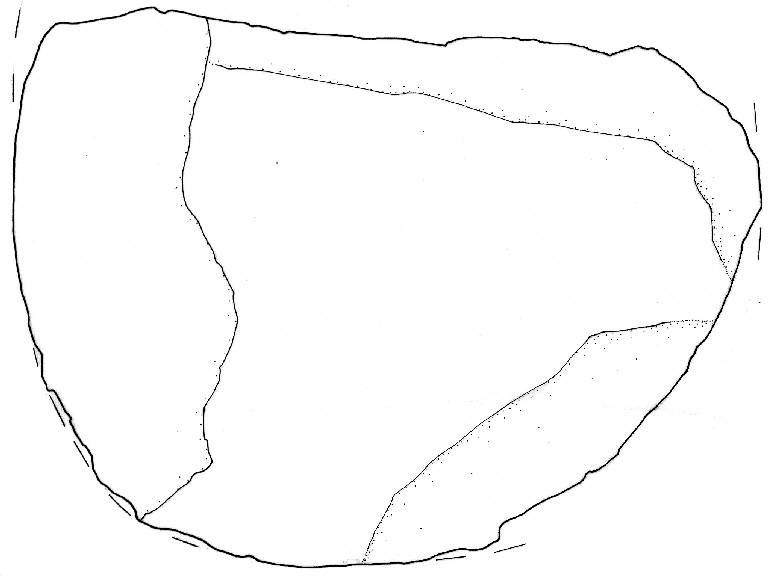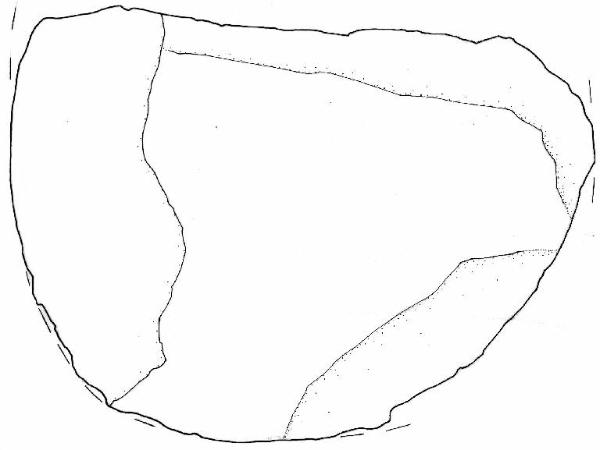 Corpo approssimativamente ellissoidale. Faccia superiore piana e levigata dall'usura, faccia inferiore convessa.