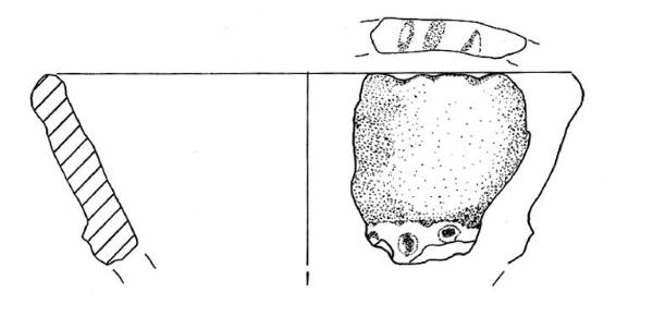 Orlo arrotondato, decorato con impressioni di polpastrello, labbro leggermente introflesso e parete a profilo convesso. A breve distanza dall'orlo è impostato un cordone orizzontale con decorazione a impressioni di polpastrello.