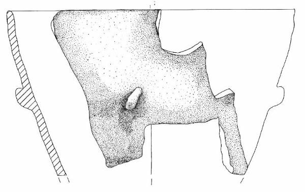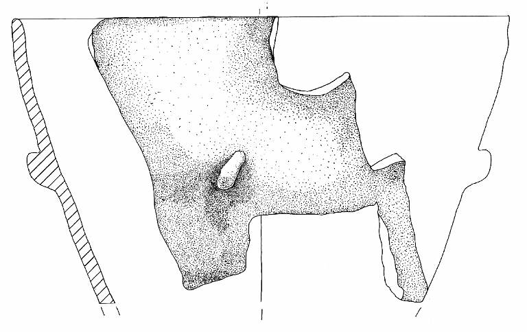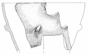 Orlo arrotondato e parete a profilo rettilineo. A breve distanza dall'orlo è impostato un tubercolo molto pronunciato.