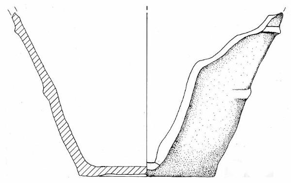 Parete a profilo rettilineo decorata con due cordoni orizzontali uno dei quali poco accennato e base concava.