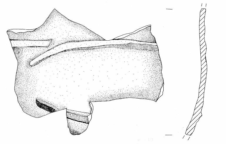 Parete decorata da due cordoni orizzontali. Quello impostato nella parte superiore risulta interrotto per poi riprendere poco dopo.