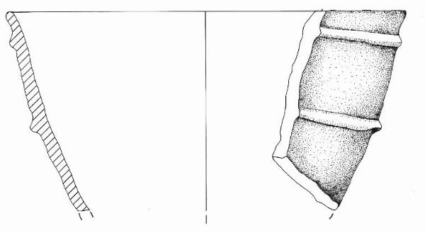 Orlo arrotondato e parete a profilo rettilineo. Sulla parete sono impostati due cordoni orizzontali.