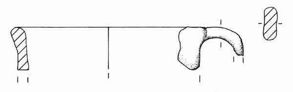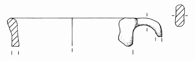 Orlo arrotondato e parete a aprofilo rettilineo. All'altezza dell'orlo è impostata un'ansa nastriforme con profilo ad orecchio.