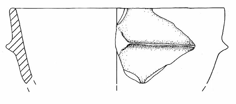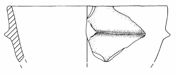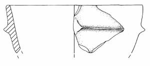Orlo arrotondato e parete a profilo convesso. A breve distanza dall'orlo è impostato un cordone orizzontale a sezione triangolare.