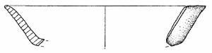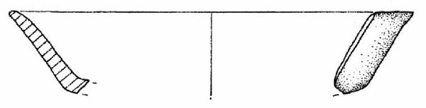 Orlo arrotondato leggermente esoverso, corpo carenato con parete rettilinea esoversa, vasca poco profonda. Superficie di colore grigio scuro (2,5 Y 4/0).