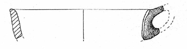 Orlo arrotondato, corpo calotta. Si conservano gli attacchi dell'ansa impostati sul orlo e sul diametro massimo. Superficie di colore grigio molto scuro (5 Y 3/1).