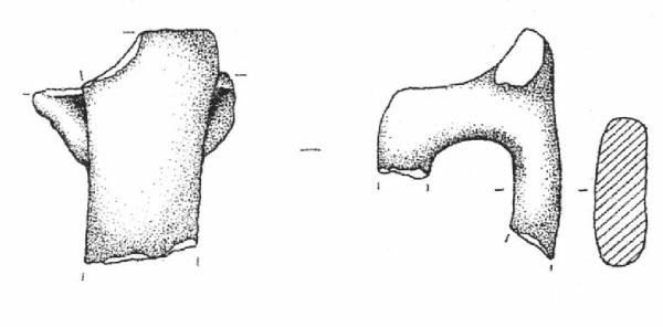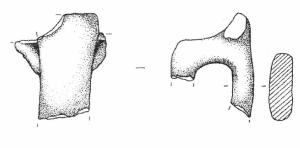 Margine superiore rettilineo e mancante dell'apice sinistro. Superficie di colore grigio scuro (2,5 Y 4/0).