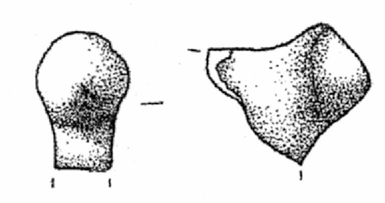 Si conserva l'apice ad espansioni laterali coniche. Superficie di colore grigio (10 YR 5/1).