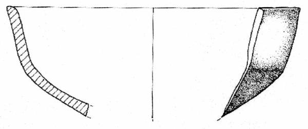 Orlo arrotondato, corpo carenato con vasca profonda e parete rettilinea, esoversa. Superficie di colore grigio scuro (2,5 Y 4/0).